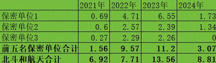 海格通信的主营业务分为无线通信,北斗导航,航空航天和数智生态四大板块。而这四大业务板块按照业务性质和下游客户情况可以分为政府客户和商业客户两大类。其中北斗导航和航空航天业务主要来源于政府客户,无线通信和数智生态业务主要来源于商业客户。从海格通信年报披露的前五名保密单位收入综合来看,前五名保密单位对当年的业绩贡献额几乎与北斗导航营业收入加上航天航空营业收入,所以,我主观认为海格通信的北斗导航加上航天航空业绩主要来源于政府客户。