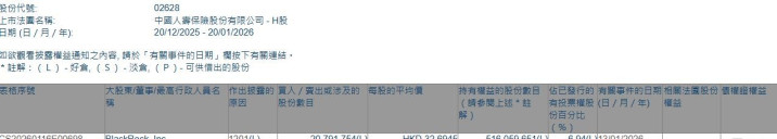 股市这地方,有时候真跟天气一样,说变就变。前脚还在讨论谁加仓了,后脚就爆出大机构悄悄撤退的消息。这不,刚进2026年没几天,中国人寿(02628.HK)这边就传出一个让市场有点坐不住的动静——贝莱德(BlackRock, Inc.)在1月13日那天,直接在场内甩出了2079.2万股,按当天每股32.6945港元的均价算,这笔交易砸下去整整6.8亿港元。你想想,普通老百姓一辈子能见几次这种数字?人家一笔买卖就这么轻描淡写地完成了。