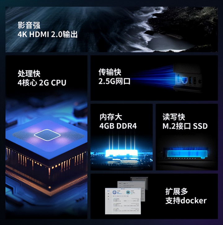 硬件上它搭载 Rockchip RK3568 四核惩办器,搭配 4GB DDR4 大内存,多建立同期拜谒、4K 影视播放、后台下载全程丝滑不卡顿。双盘位筹算解救总容量可达 44TB,每个家庭成员的珍稀影像、影视资源都能妥善安放;特等配备 M.2 NVMe 插槽,原生 2.5G 网口 + HDMI2.0 接口配都,让家里的电视提供了多种纠合边幅,班师秒变私东谈主影院。