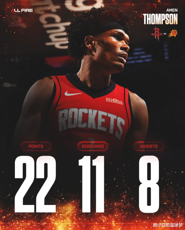 火箭逆转太阳21分的比赛,阿门是赢球的最大元勋,他在小节12分钟里,7中6拿到12分3篮板2助攻,他一东谈主的粉碎了太阳的防地,全场比赛阿门拿到22分11篮板8助攻3抢断1盖帽的全面数据,掷中率高达62.5%。
