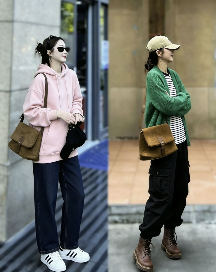 卫衣与工装裤的搭配简直爱死了,粉色+卡其色组合,小女不满质非常减龄,而真诚衫+碎花裙组合的森系穿搭就更得当打造小崭新,绿色真诚开衫和缓又显活力,相沿的棕色乐福鞋与单肩包神采相呼应,相沿又和缓。