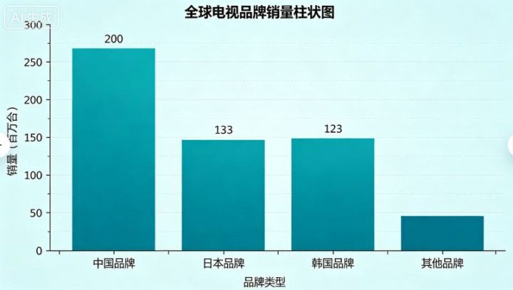 日本的索尼、夏普、松下第统统品牌加一都一共 500 万台,占全球总销量的 2.4%。也曾的王牌产业一个个被我们赶超,如今上风所剩无几。然后便是其他品牌,基本便是杂牌了,全球其他几百个品牌加起来一共卖了 6200 万台,占全球销量的 30%。