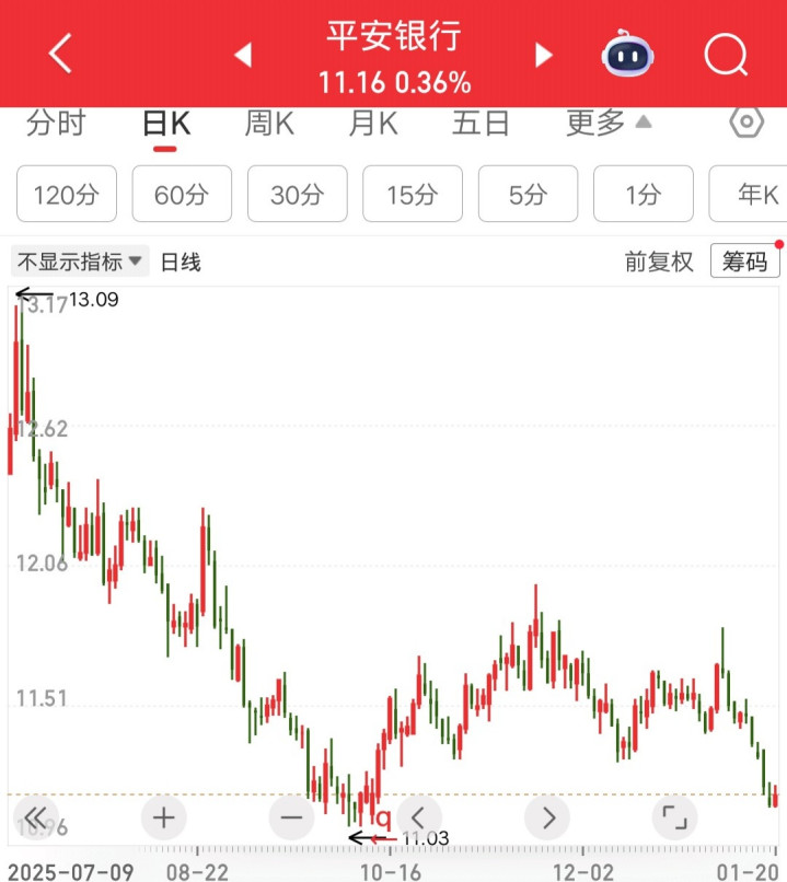 股价在2025/7/10涨到13.09元,先走了3个月的单边下跌,之后在区间震荡了3个月,可能形成双底结构。
