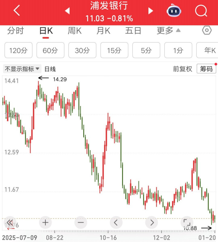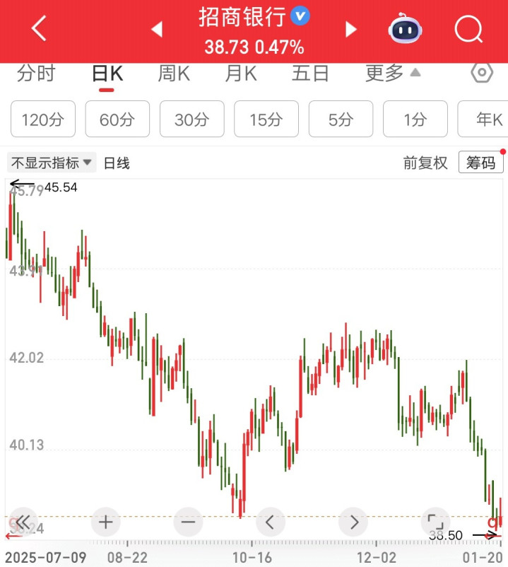 股价在2025/7/10涨到45.54元,之后一路杀跌,131个交易日,跌幅超过12%。昨日破新低后,今日收了一根止跌小阳线。