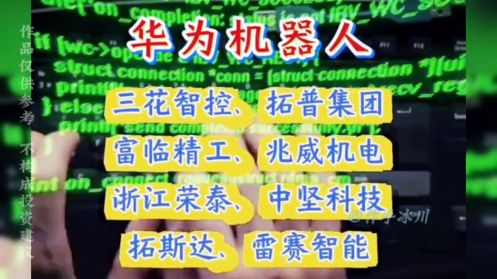 ·特斯拉机器人:卧龙电驱、三花智控、上纬新材、奥比中光、恒工精密、均普智能。
