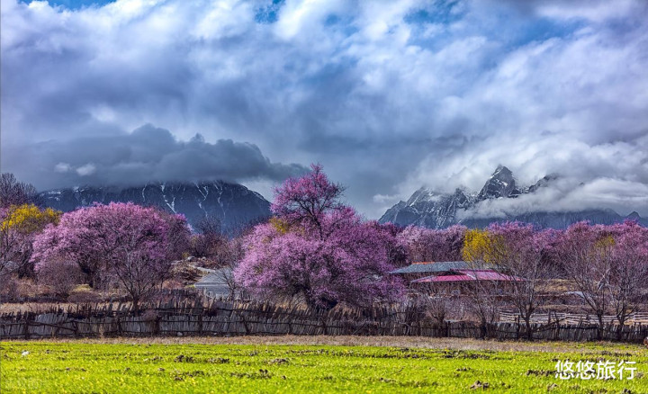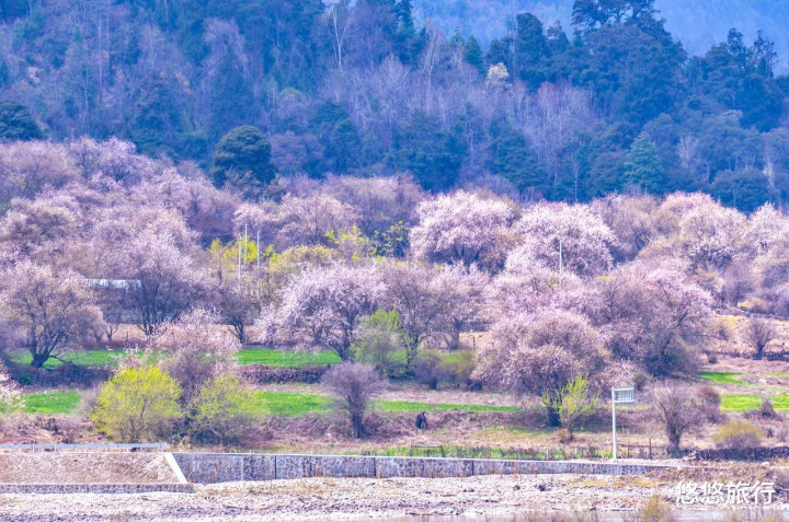 波密桃花沟、嘎拉桃花村,桃花极端密集。住索松村,推窗见花,看南迦巴瓦峰。