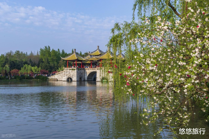 鉴真大路樱花繁密,沿古运河骑行,开云app下载风吹落樱。个园、何园的玉兰和樱花正盛,夜游古运河别有风范。