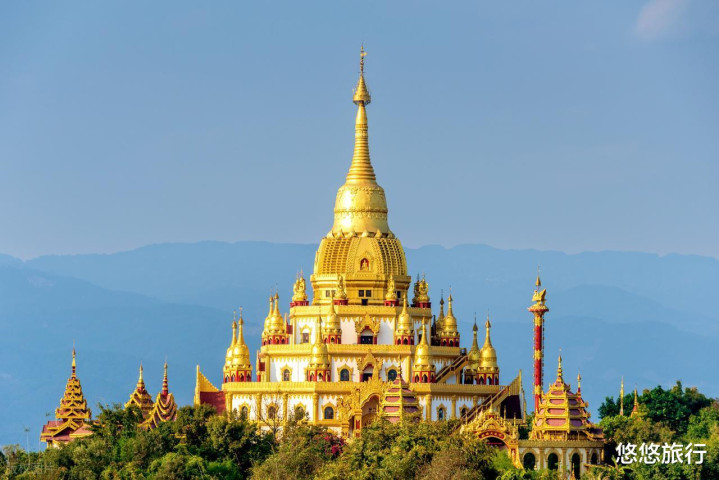金塔银塔俯视芒市全景,山顶熠熠生辉。树包塔号称塔中绝景。