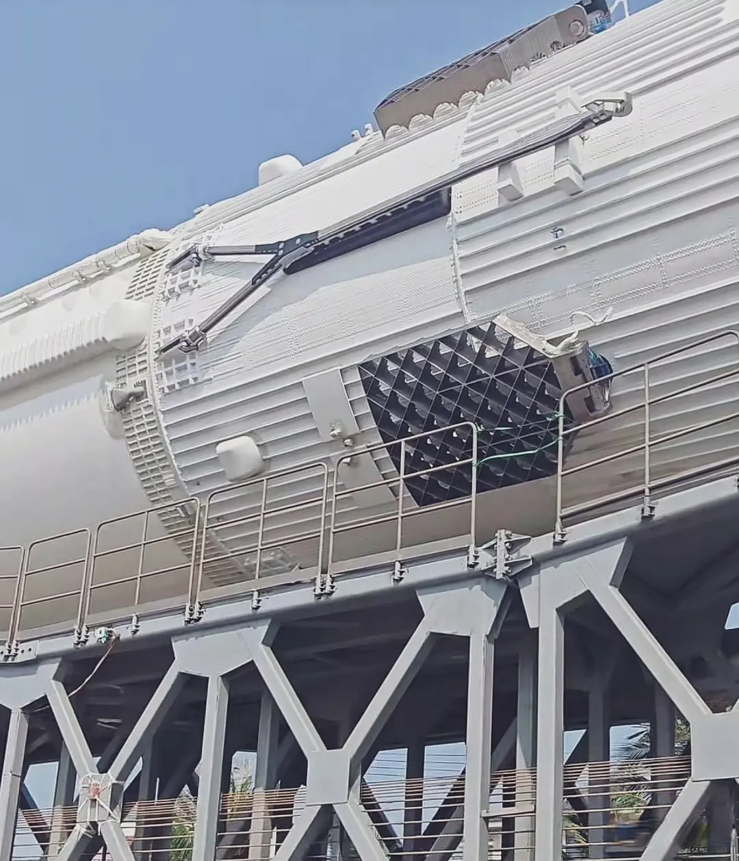 与 SpaceX猎鹰9号的垂直着陆腿回收不同,国度队弃取了一条更奥密、更符合大直径火箭的 “四两拨千斤” 之路 —— 海上平台网系拿获。